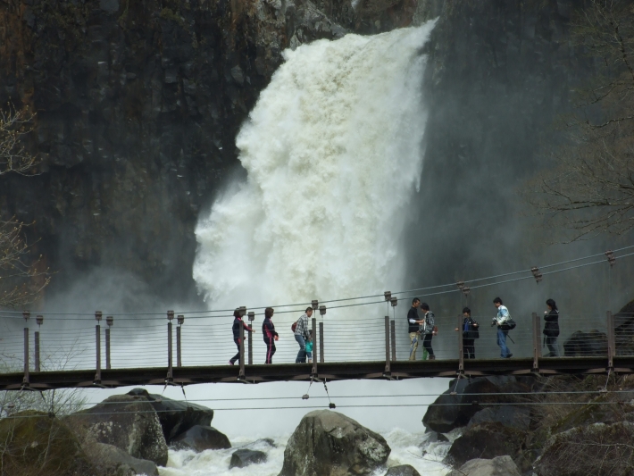 5月初旬に訪れた苗名滝、雪融けの増水で大変な迫力でした。