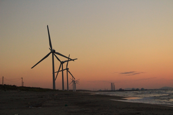 胎内市村松浜にて♪以前は何もなかった浜辺にも風車が増えました(´・×・`)