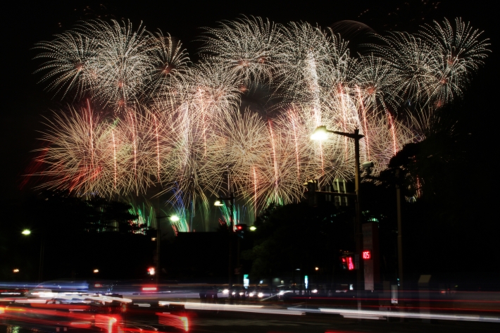 街の中心部でこんなに大きな花火が見れるところは数少ないです.感謝!