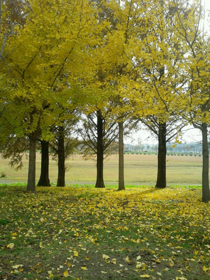11月の晴れた日曜日。いいお天気で新潟市西蒲区の上堰潟公園へ散歩に行きました。イチョウがすごくきれいだったので、スマホで撮った写真です。暖かい日だったの人出がいっぱいでした。