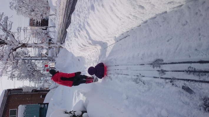 母方の実家に帰郷したお正月。家の前の積雪は250㎝を超えてました。