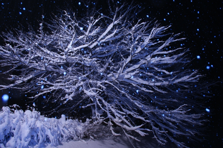 五泉市の城跡公園の桜の木です。街頭に照らされて、とても綺麗でした。