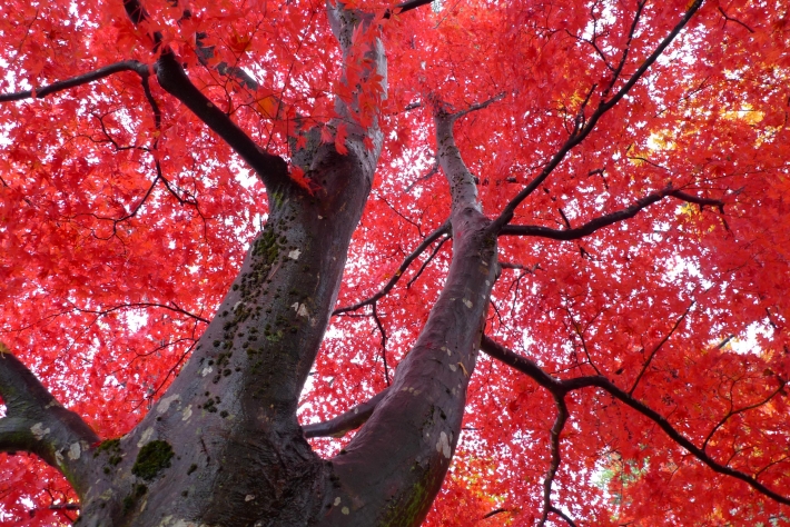 村松公園のモミジです。真っ赤な色に、生命の熱を感じました。
