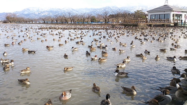 掃除をしていたらアルバムを見つけました。幼少の私を抱いた祖父の写真がありました。祖父を連れて行きたいと思いましたが、もういません。気がつけば瓢湖の白鳥も少なくなってカモばかりでした。昼間は付近の田んぼに行っているそうです。40年前の写真とだいぶ環境も変わっているようです。