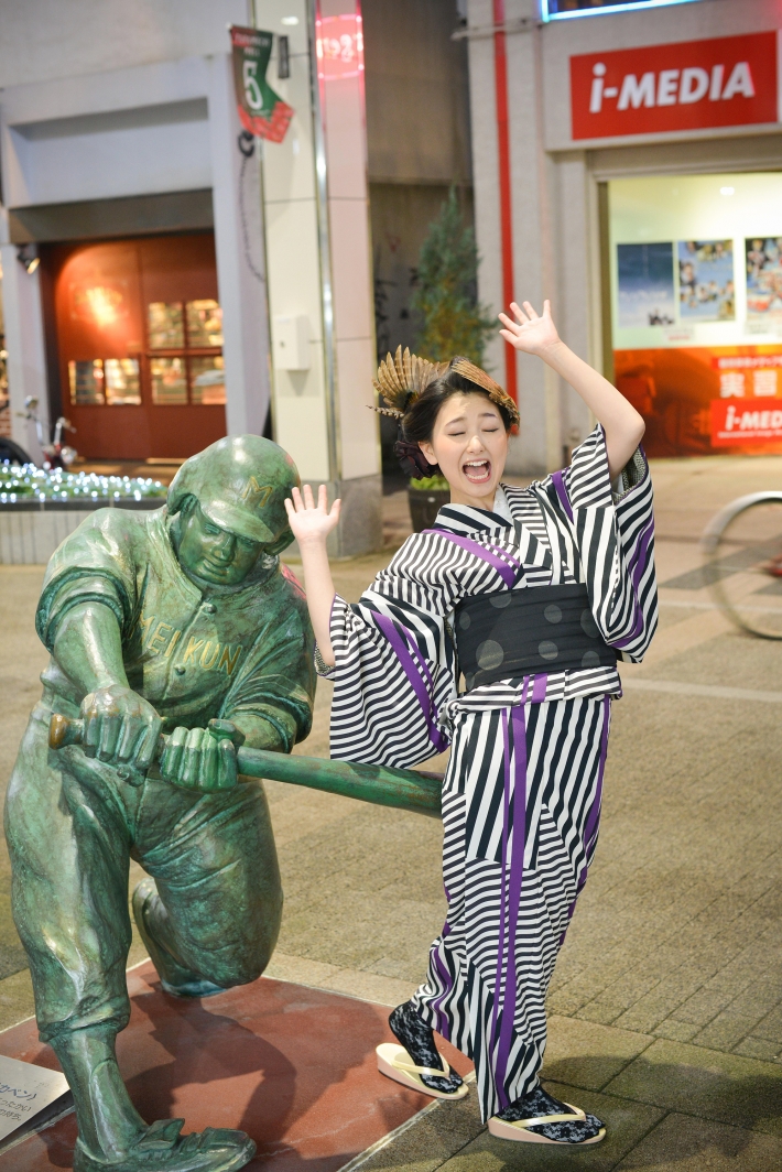 古町にある観光資源、山田太郎と記念撮影しました。