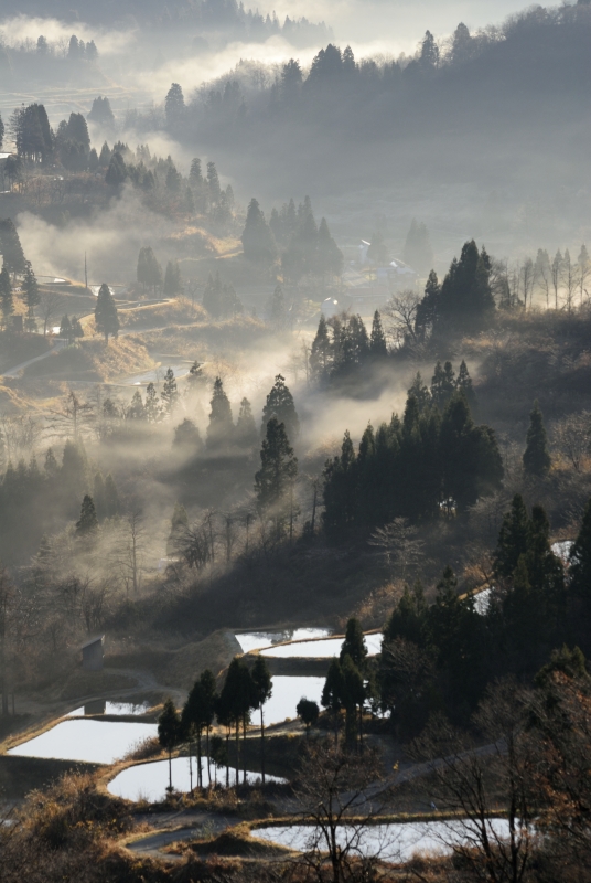 秋、晴れた日には朝霧が漂い、都会のカメラマンを魅了しています。