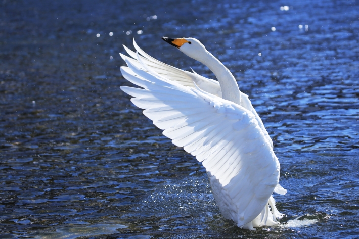 雪解けの透き通った水の流れが、白鳥の白く高貴な羽根をさらに輝かせていました。