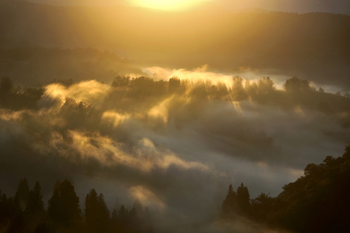 山古志の朝霧が出て幻想的な風景になりました。