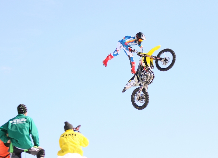 おぐに雪まつり 雪上エンデューロ大会のイベント、有名プロライダーによるフリースタイルモトクロスです。