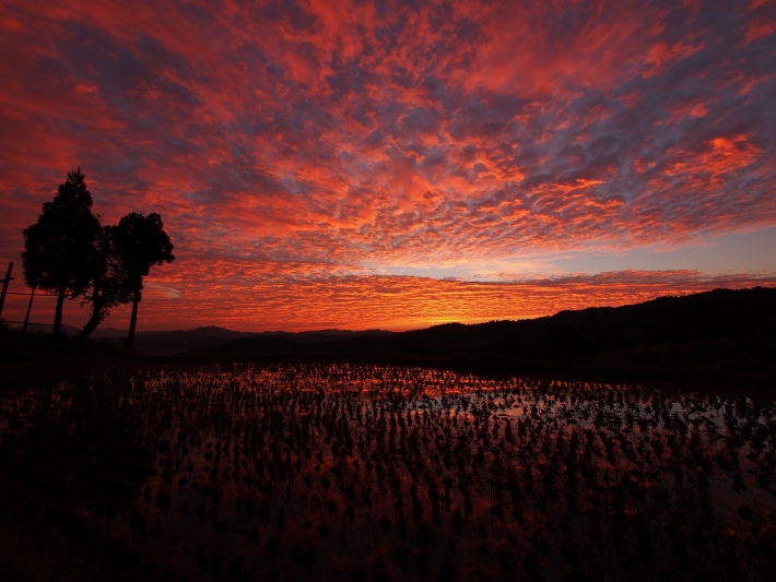 「大月の棚田」で 物凄い朝焼けが見れました。