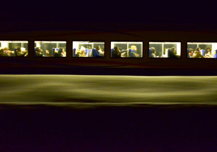 十日町雪まつり・・昼間に見かけたオレンジ色の臨時列車の帰りを待ってパチリ、車内の雰囲気を窓からの照明で伝えたかった一枚です