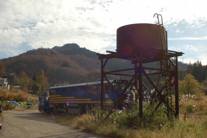 絶景の秘境路線であり豪雪地帯を走る赤字路線の只見線の大白川駅にある旧給水タンクと除雪ディーゼル車です。