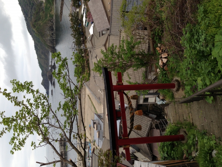 粟島浦村釜谷地区にある塩釜六所神社へ向かう道の途中で撮影しました。階段を登りながら先に何があるのだろうとわくわくする気持ちを抱えつつ、振り返った時に釜谷の民家、そして粟島の海と野山全てがひとつになった景色に心を奪われる、そんな一瞬を切り取った一枚です。