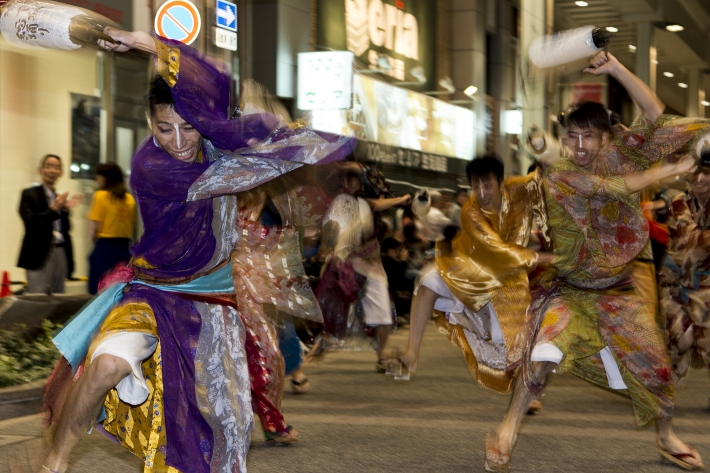 夜の撮影は難しいです~動きも大きくて ぶれた姿に躍動感を感じ、投稿します。新潟総踊り、下駄踊りです。