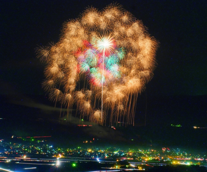 片貝まつりを見に行きました。 世界一の大きさの四尺玉花火は、片貝の町明かりに彩りを添えました。