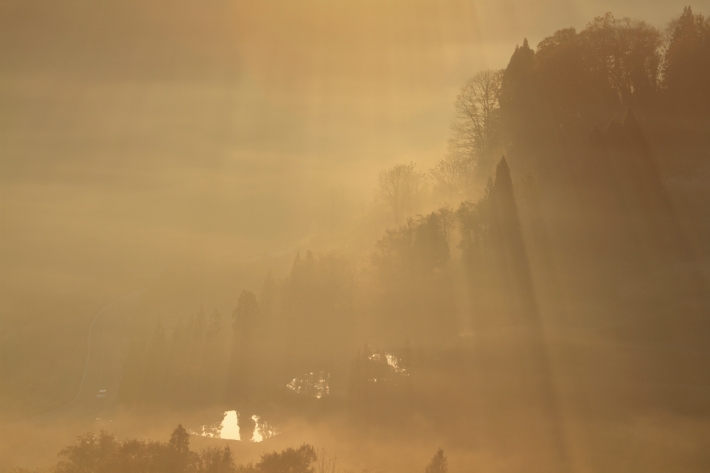 棚田と近くを通る道路。その道路を見ていると、「今でもこの辺りの人達は上手に自然と付き合っているんだなぁ。」と思いました。
