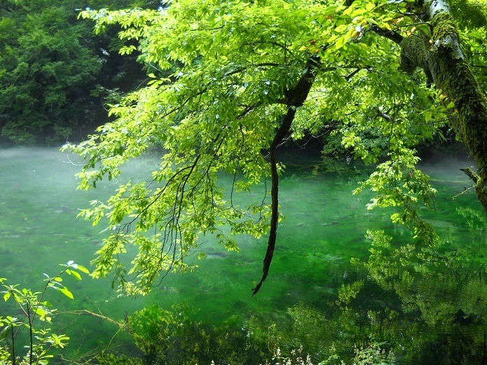雨の日の翌日、霧に包まれた竜ヶ窪です。