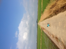 7.15 あいこさん愛犬の散歩道は素晴らしい青空と稲の緑に弥彦山が見えます(新潟市 南区)