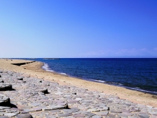 9.28 ろくえんさん夏が終わり静かな浜辺。 遠くに佐渡が見えます。(新潟市 西区)