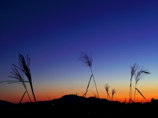 9.28 ろくえんさん夕暮れの角田山を背に 風になびくすすきの穂(新潟市 西区)