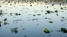 9.29 しんぞうさん秋の初めの瓢湖。花盛りを終えた蓮が水面に映る姿は、まるで...(新発田市)