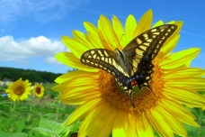 2.8 片原淳志さん五泉市の小さなヒマワリ畑での一枚です。飛び回るアゲハを追...(五泉市)