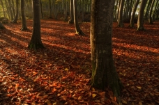9.3 秀麻呂さん秋十日町市の美人林は、敷き詰められたように落葉した葉が落...(十日町市)