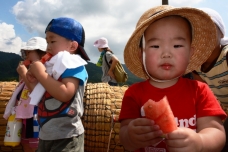 2.25 たぬちゃんさん関川 たいしたもんじゃ祭りでの 一コマ。子供の行列もある...(関川村)