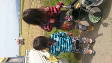 2.24 三味線のおりほさん毎年恒例の稲刈り。小さな孫達にかっこいい姿を見せてくれて...(五泉市)