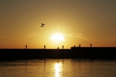 2.24 リバティさん巻き漁港の夕景です 釣り人の頭上をモーターハンググライダー...(新潟市 西蒲区)