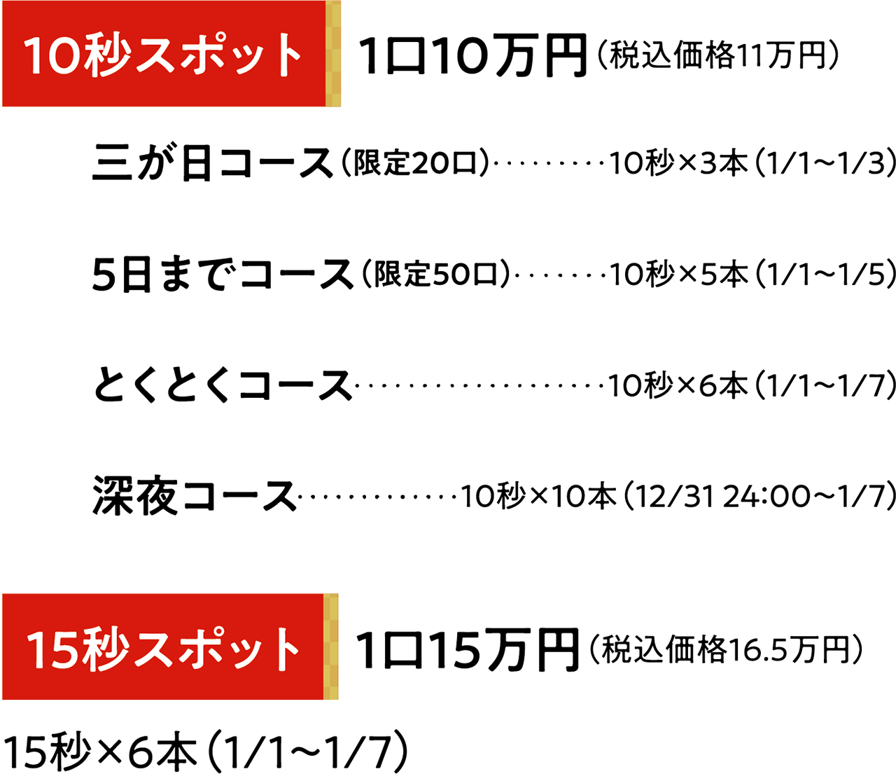 ※スポットの表記上12/31の24:00以降(1/1午前0時以降)からの放送となります。