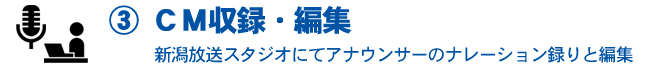 尚、CMのナレーションは、ご希望のアナウンサーで極力読ませていただきます。