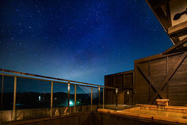 他のホテルでは味わえない非日常の世界をつくりだしています。大自然に囲まれた湖上にたたずむお城のようなホテルと展望露天風呂から見る星空は絶景です。