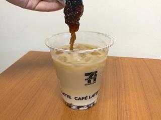 セブンイレブンの「黒糖わらび餅」を「アイスカフェラテ」にいれるだけ!