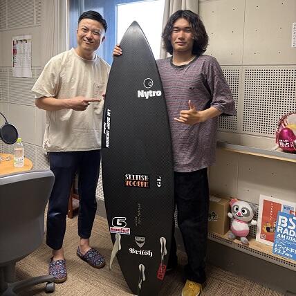 このサーフボードは静岡のスポンサーの方からの提供なんだって!