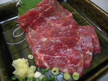 長野から取り寄せた馬刺しは、濃厚な味わい!