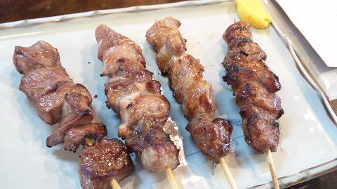 「タン、オビ、白(ホルモン)、赤(レバー)、カシラ」