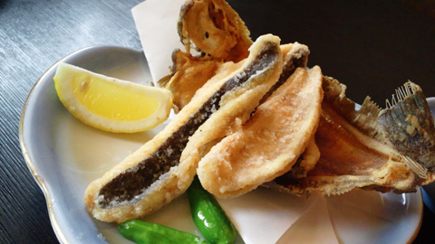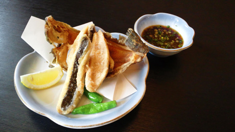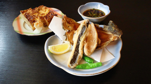 身を5枚におろし、中骨も2度揚げして、食べられるようにしてあります。