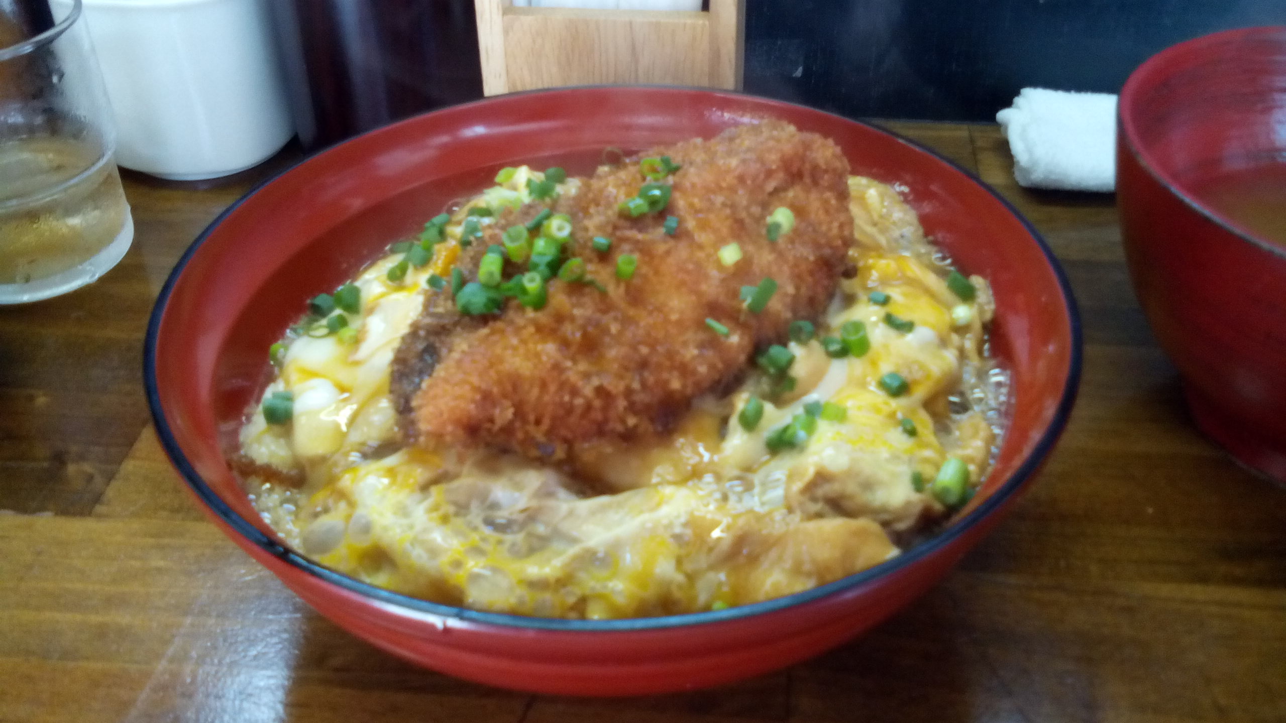 トロットロのたまごに鶏肉がとじられ、加えてタレカツでガッツリです![]()