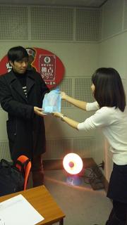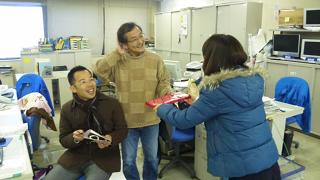 チョコを配る山田。