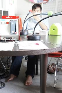 お靴を脱いでお行儀よく足をそろえての生放送でした。