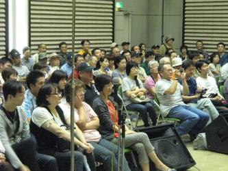 お客さまの間を縫って、丈 立青さんが出てこられました。