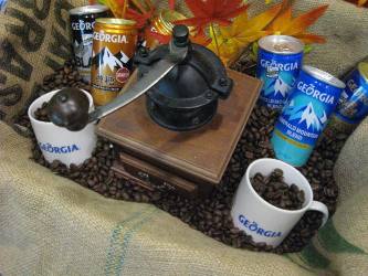 手に持っているのは、人気の缶コーヒー・ジョージアです。