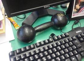 近藤さんのデスクにはいつも5キロの鉄の塊がのっています。
