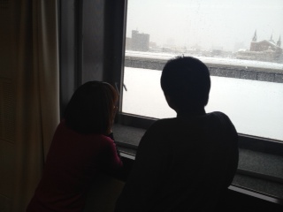 時間によっては、川向こうの建物が、雪で見えなくなるほどでした。