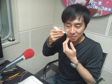 番組中に、ひげを剃る男を。