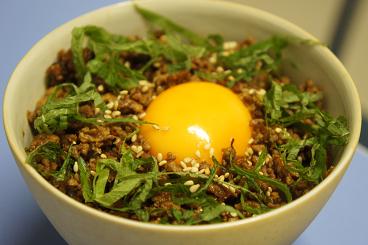 - 茹でた中華麺やご飯の上に肉みそをのせ、卵をのせてトッピングものせる