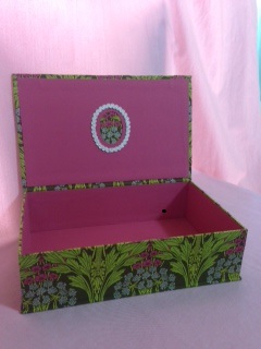 「カルトナージュ」とは、厚紙を組み立てた箱などに布を貼り付けたり、