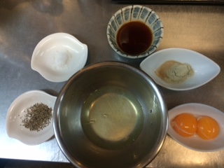 ③ 卵を卵黄と卵白にわけ、卵白を泡立てる。(ふわっと白くなるぐらい)
