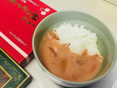 で、りえちゃんのテンションをダダ下げしたのがこちらの『さくらんぼカレー』。いや、これね、食べてみたらなかなかのお味よ。ただ、見た目は。見た目はどう見ても、塩辛なのであります。